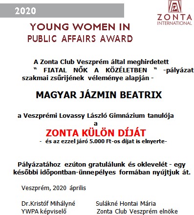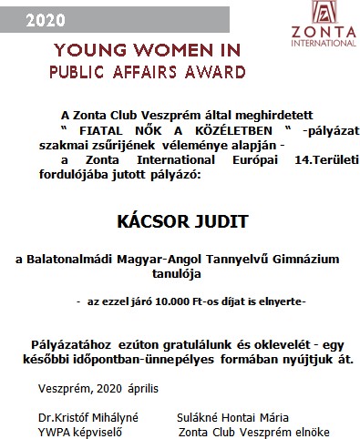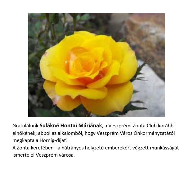 Veszprém szellemi, művészeti értékeinek létrehozásáért, nemzetközi hírnevének öregbítéséért, valamint a nők és gyermekek érdekében több évtizeden át végzett kimagasló tevékenysége elismeréseként Gizella-díjat adományozott a Zonta Club Veszprém részére a vármegyeszékhely közgyűlése. Podcast